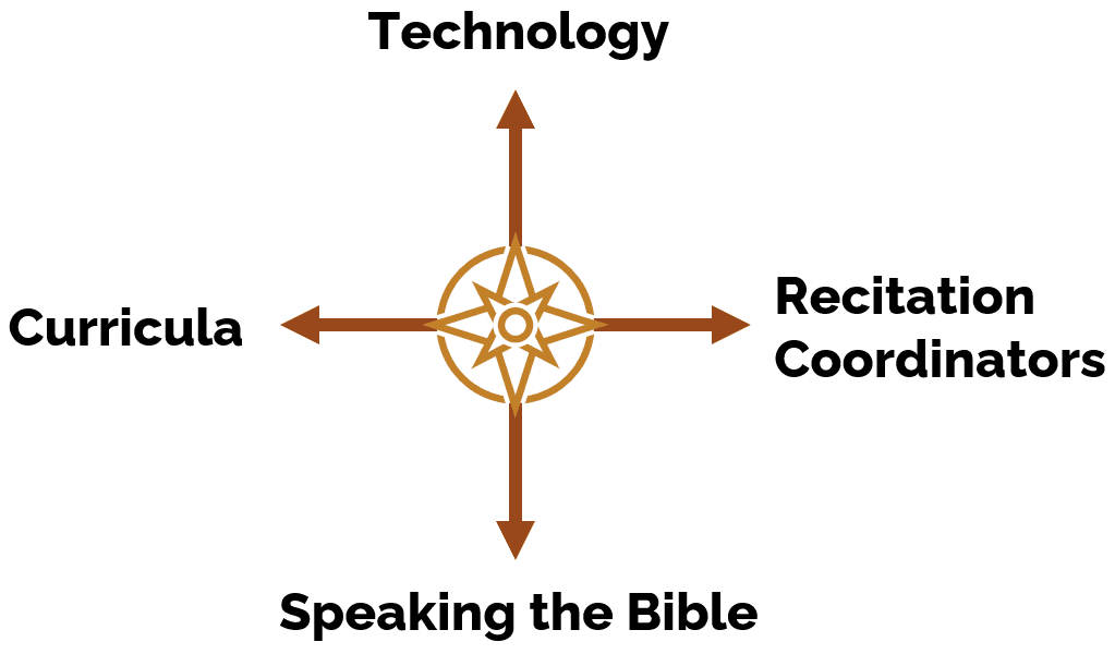 The four points of By Heart’s growth compass are: Technology, Curricula, Speaking the Bible (our Bible study series), and our in-church leaders known as “Recitation